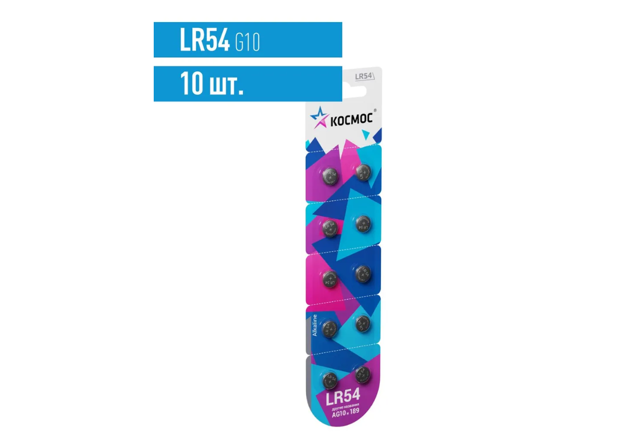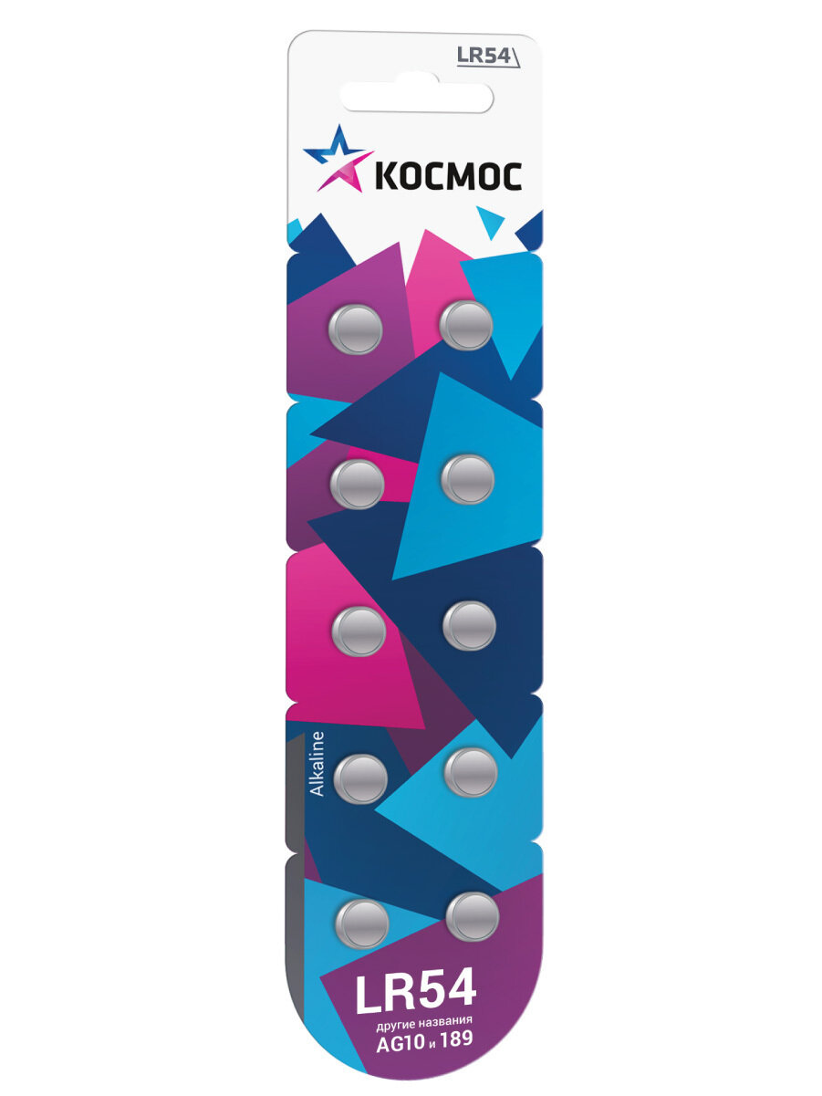 Набор алкалиновых батареек космос G10 (L1130, LR54, 189, 389) блистер 10 шт.