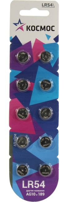 Элемент питания алкалиновый "таблетка" AG10 LR54 (блист.10шт) Космос KOCG10(LR54)10BL ( 1упак. )
