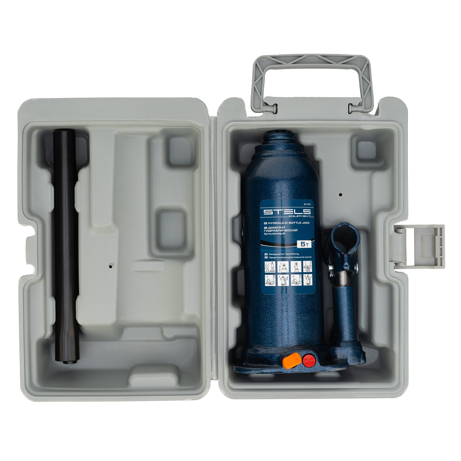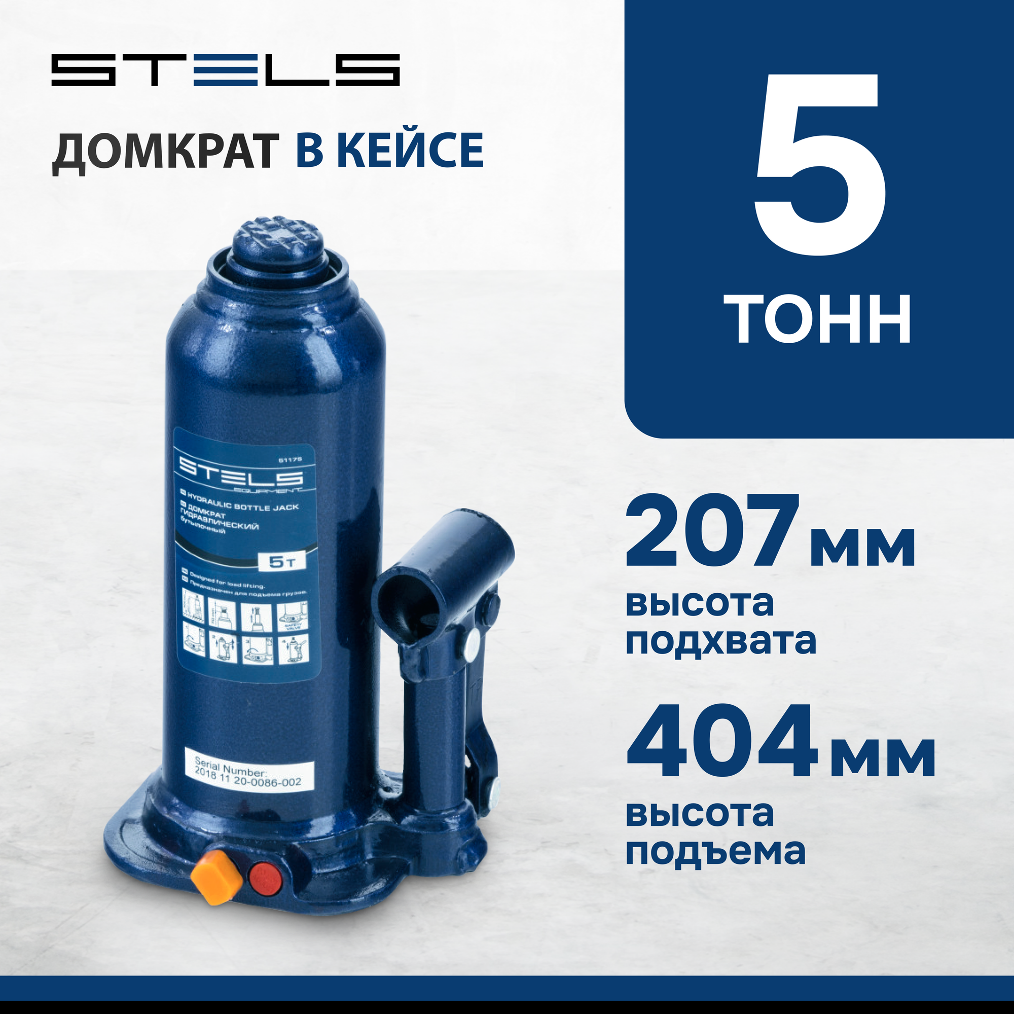 Купить STELS Домкрат гидравлический бутылочный, 5 т, h подъема 207-404 мм, в пластиковом кейсе Stels, ( 51175 )