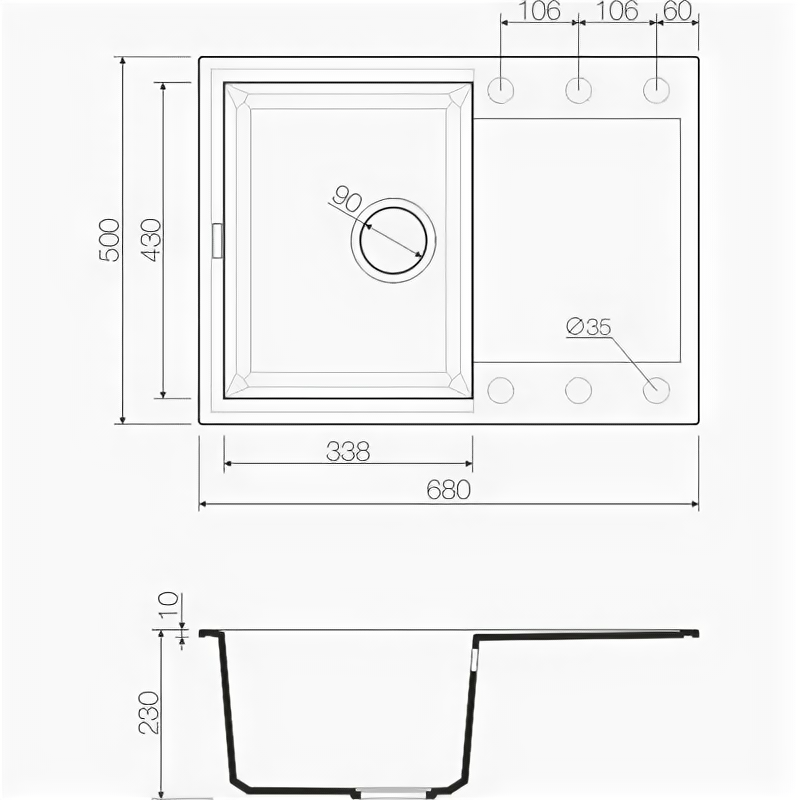 | Ширина мойки | 68 см |