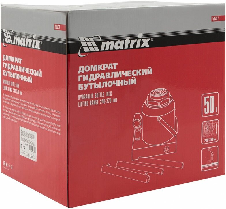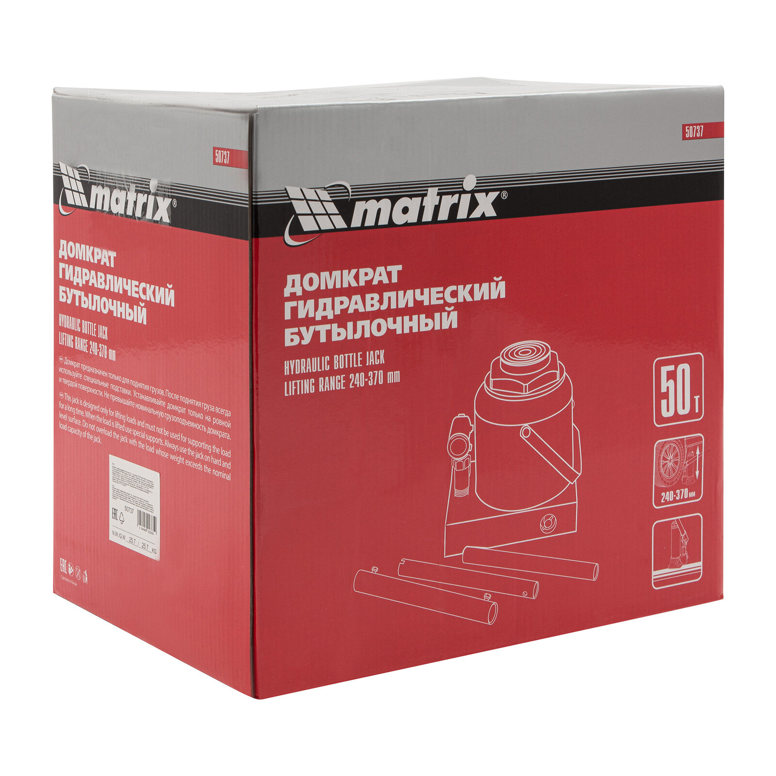 Домкрат гидравлический бутылочный, 50 т, высота подъема 240-370 мм MATRIX 50737