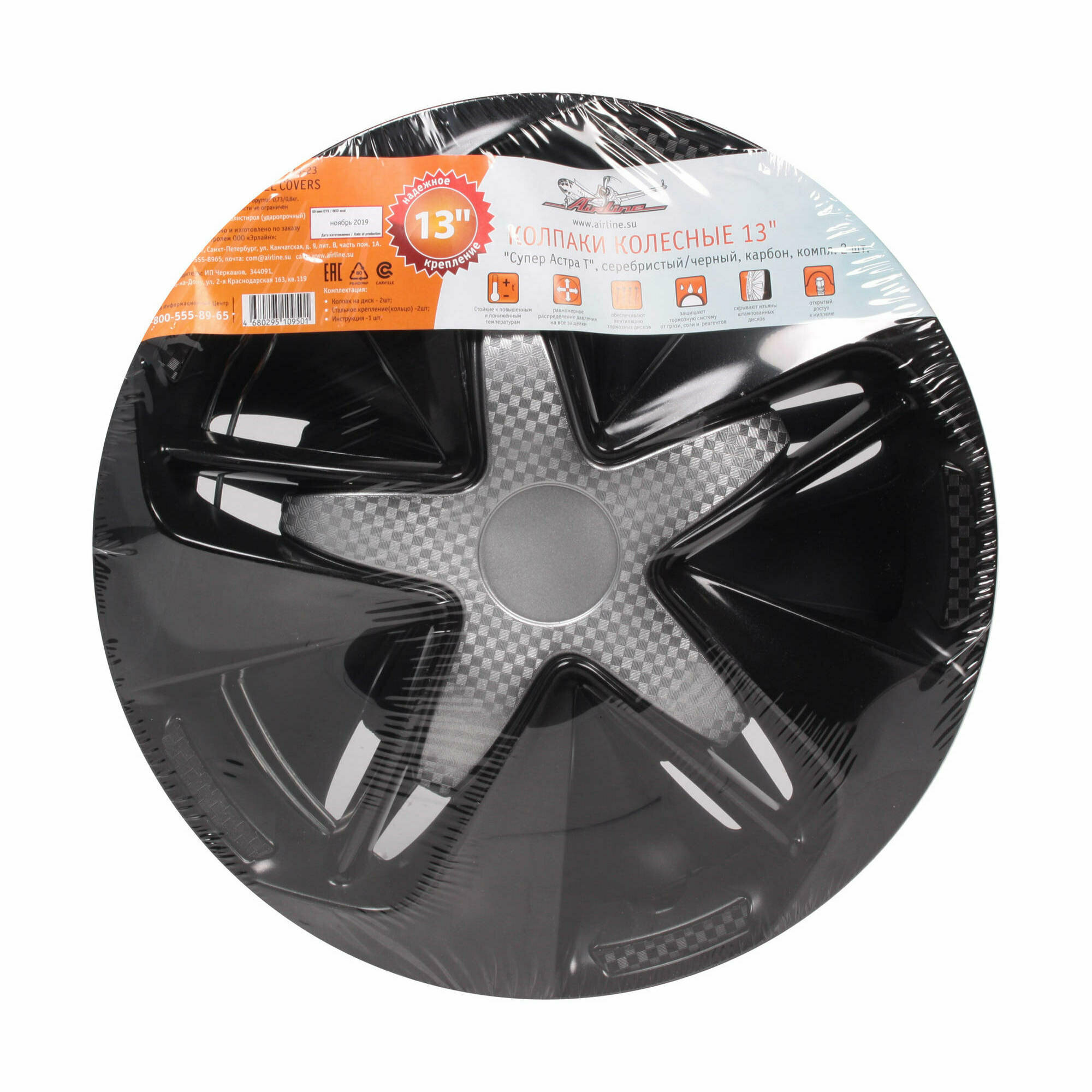Колпаки колесные супер астра серебристыйчерный карбон компл AIRLINE AWCC1605