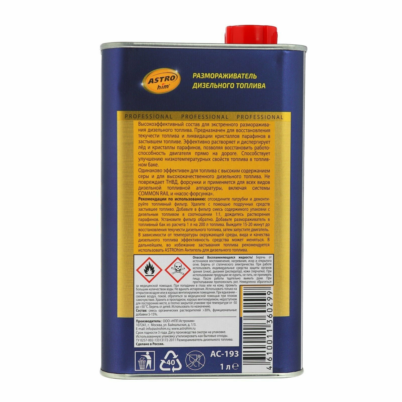 Размораживатель дизельного топлива, жестяная канистра 1 л ASTROhim AC193