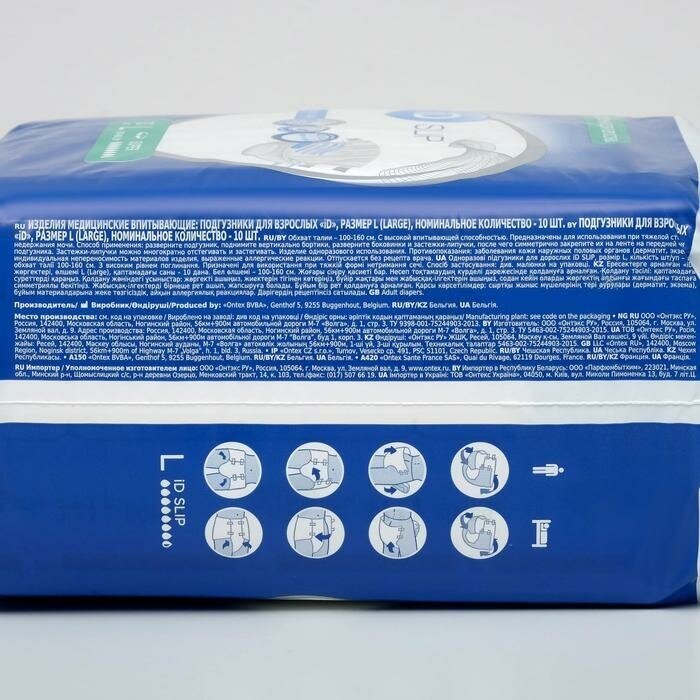 Подгузники для взрослых iD Slip Large, объем талии 100-150 см, 10 шт.