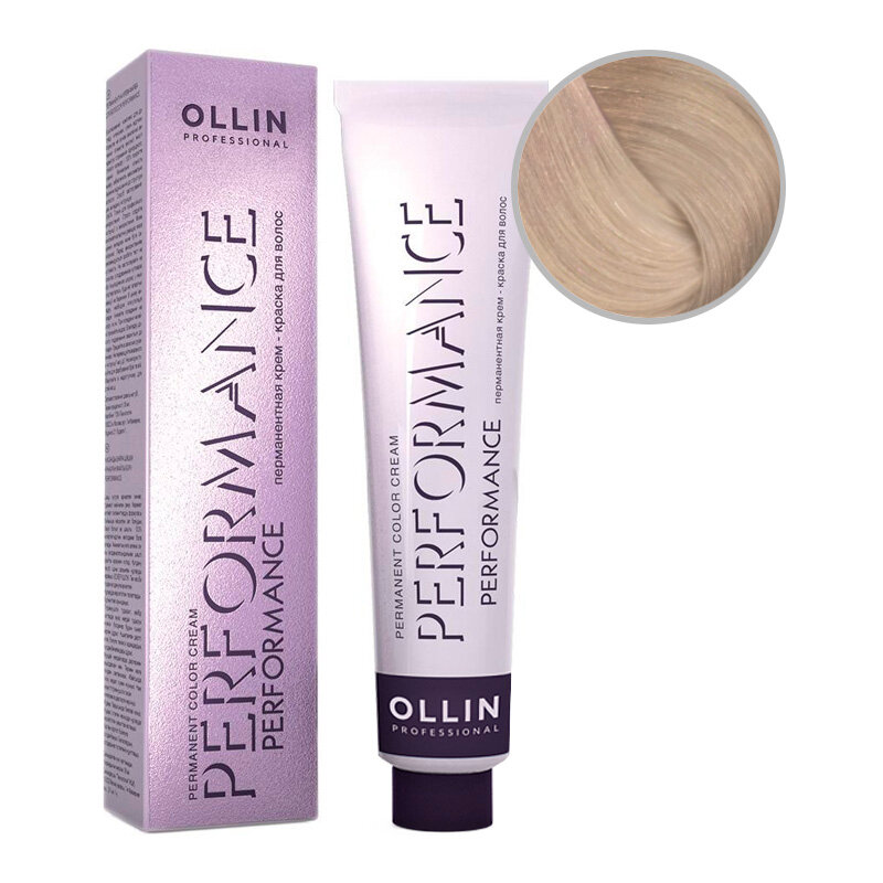 OLLIN, PERFORMANCE, Перманентная крем-краска №10/1, светлый блондин пепельный, 60 мл
