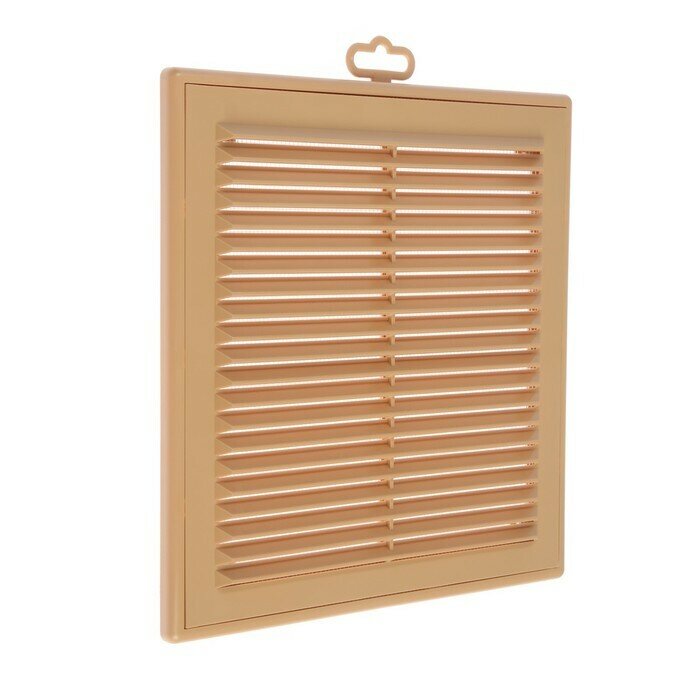 Решетка вентиляционная разъемная с москитной сеткой (наклонные жалюзи, бежевая, 208х208)