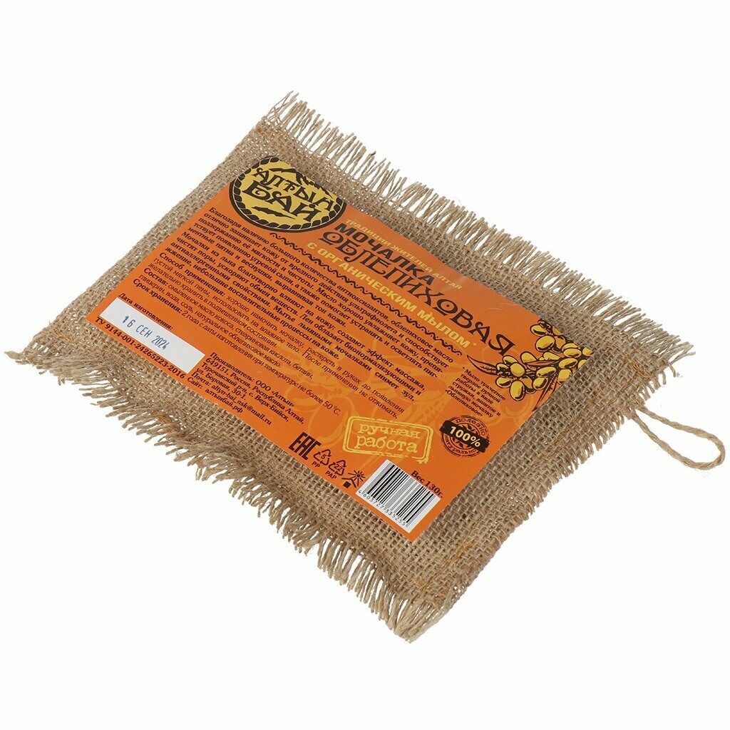 Купить Мочалка для тела Облепиховая ручной работы, Алтын Бай, 130 гр