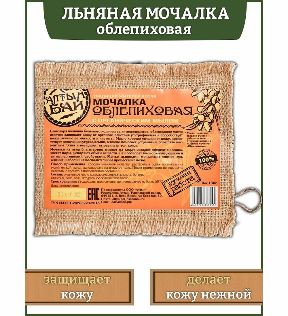 Мочалка льняная с органическим мылом облепиховая, 130 г АлтынБай