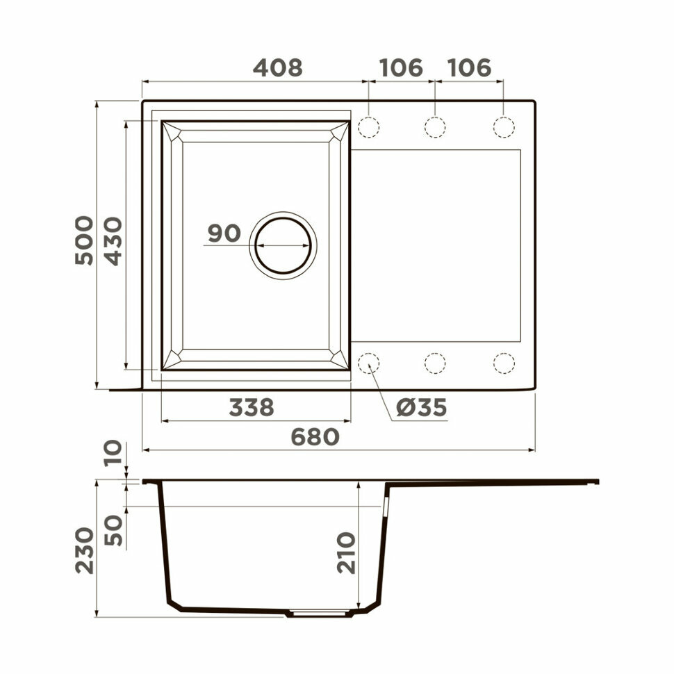 | Ширина мойки | 68 см |