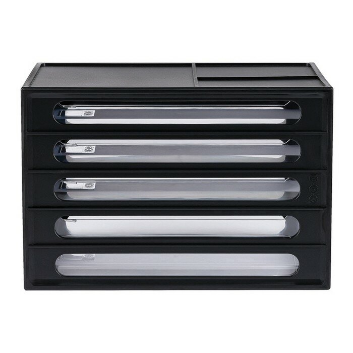 Бокс с выдвижными лотками закрытый Стамм 4 лотка черный/прозрачный (формат A4)