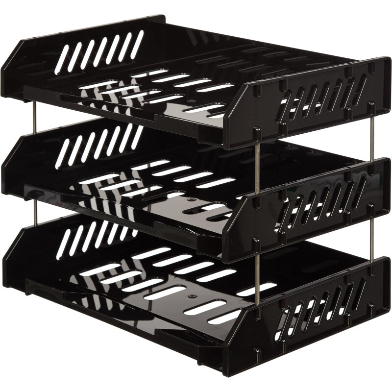 Лоток для бумаг Стамм "Сити", набор 3 шт, на металлических стержнях, широкая загрузка, черный