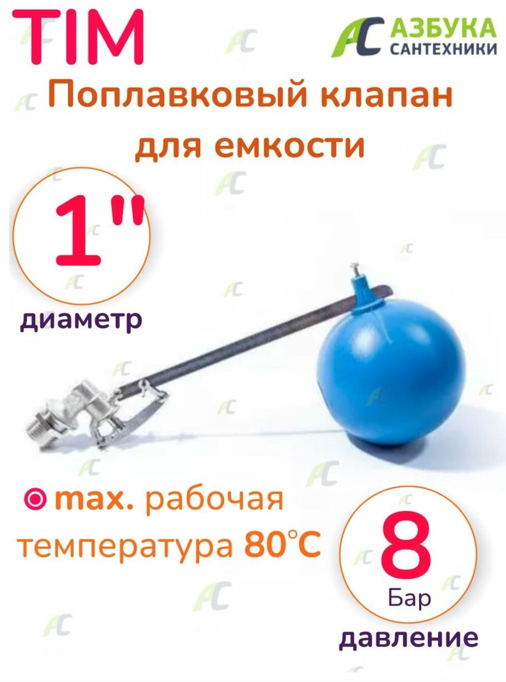Купить Поплавковый клапан для емкости 1"ш* 150мм (поплавка) BAF6415S TIM