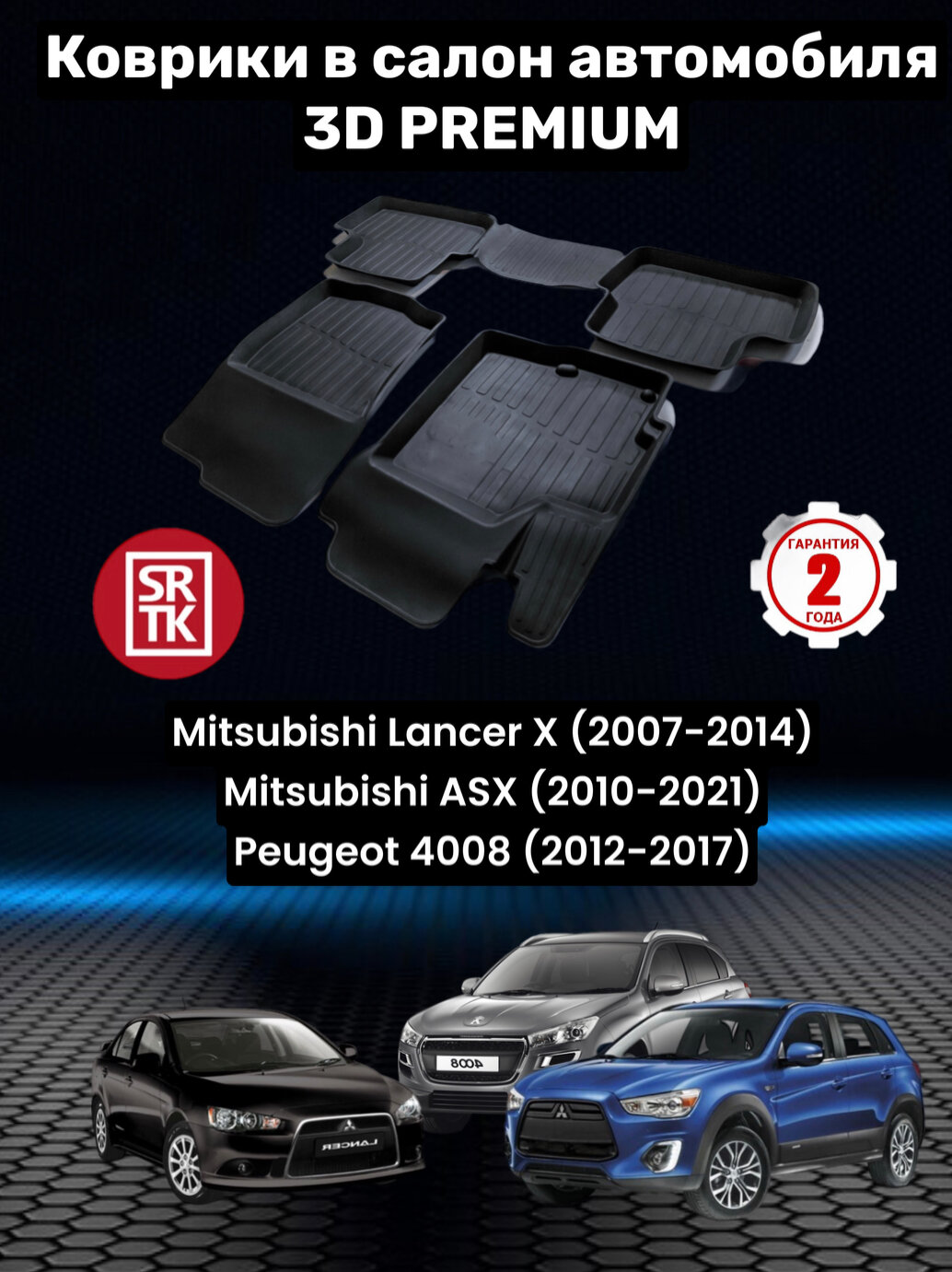 Ковры резиновые в салон для Митсубиси Лансер 10/Митсубиси АСХ/Пежо 4008/Mitsubishi Lancer X (2007-14) /Mitsubishi ASX ( 2010-21)/Peugeot 4008(2012-17)3D PREMIUM SRTK (Саранск) комплект