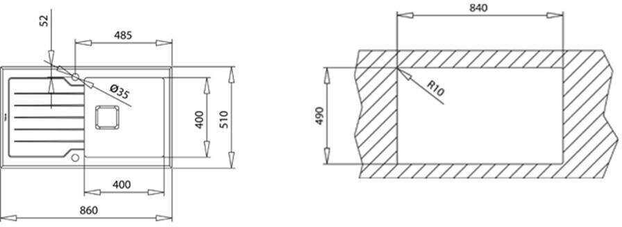 | Отверстие под смеситель | есть |