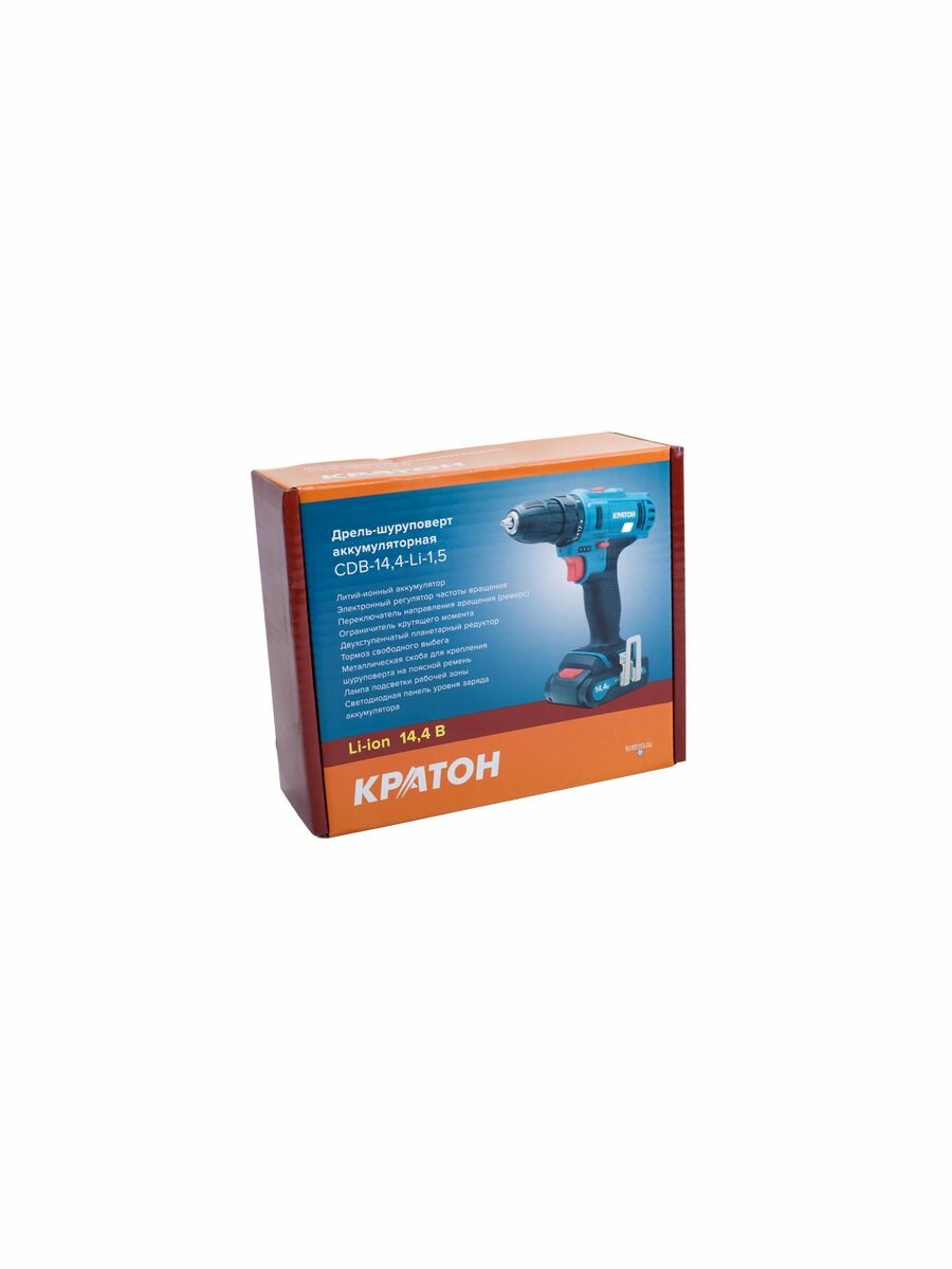 Дрель-шуруповерт аккумуляторная Кратон CDB-14,4-Li-1,5 (14,4 В, 1,5 А·ч; 1 АКБ, картонная коробка, подсветка рабочей зоны)