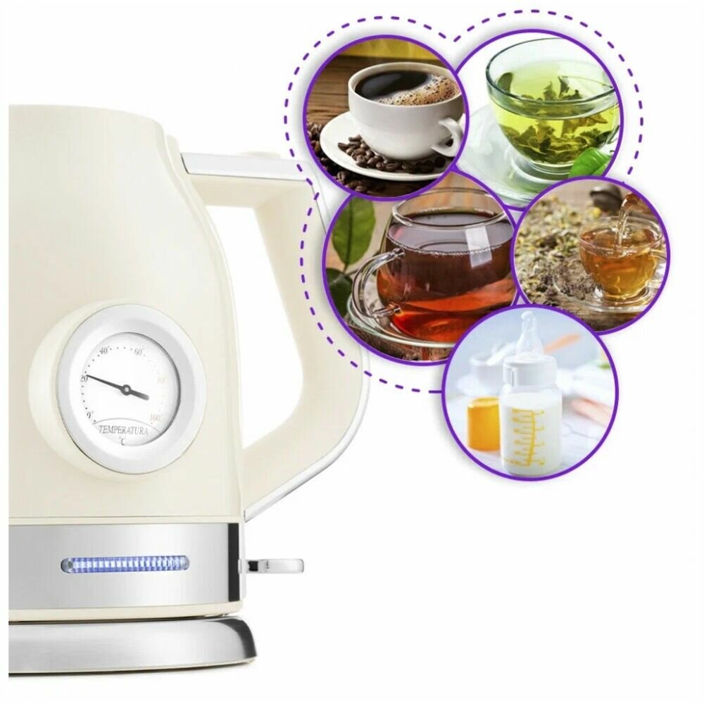 | Плюсы: | Понравился своим дизайном, давно хотела такой чайник. Цвет приятный бежевый. Удобно что есть термометр, сразу видно какой температуры вода,чтобы заварить чай. Ручка удобная.
