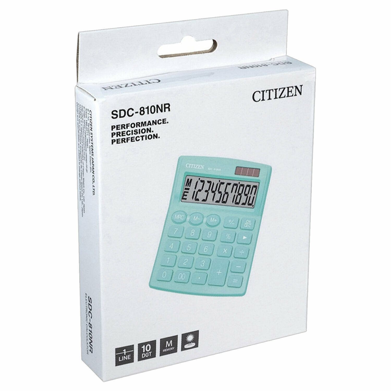 Калькулятор настольный Citizen SDC-810NR-GN, 10 разрядов, двойное питание, 102*124*25мм, бирюзовый И 4560196212558