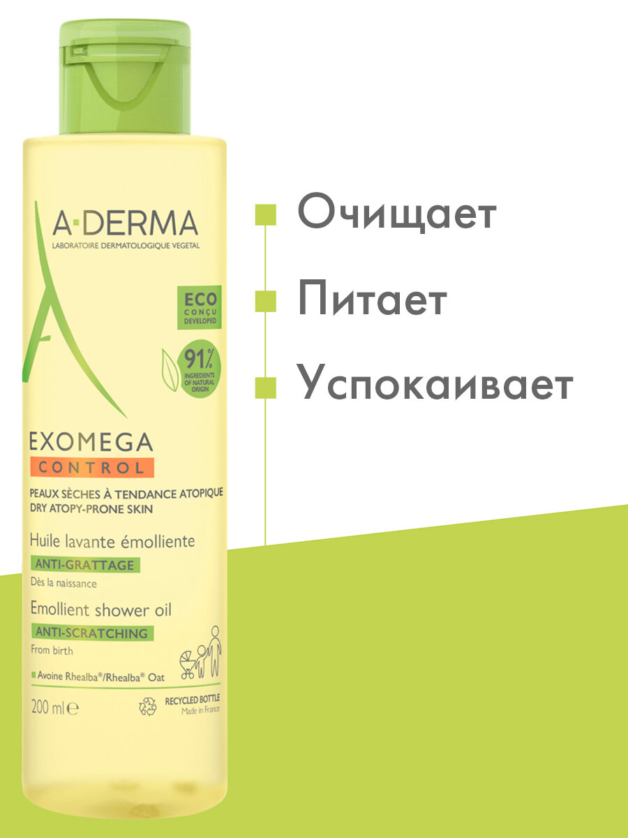 A-Derma Exomega Control Anti-Scratch Emollient смягчающее масло для душа, 500 мл 1 шт