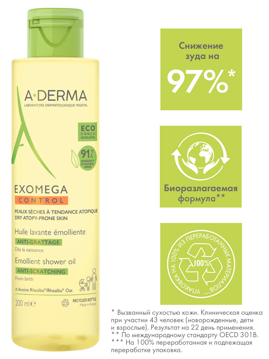 A-Derma EXOMEGA CONTROL Смягчающее масло для душа, 200 мл