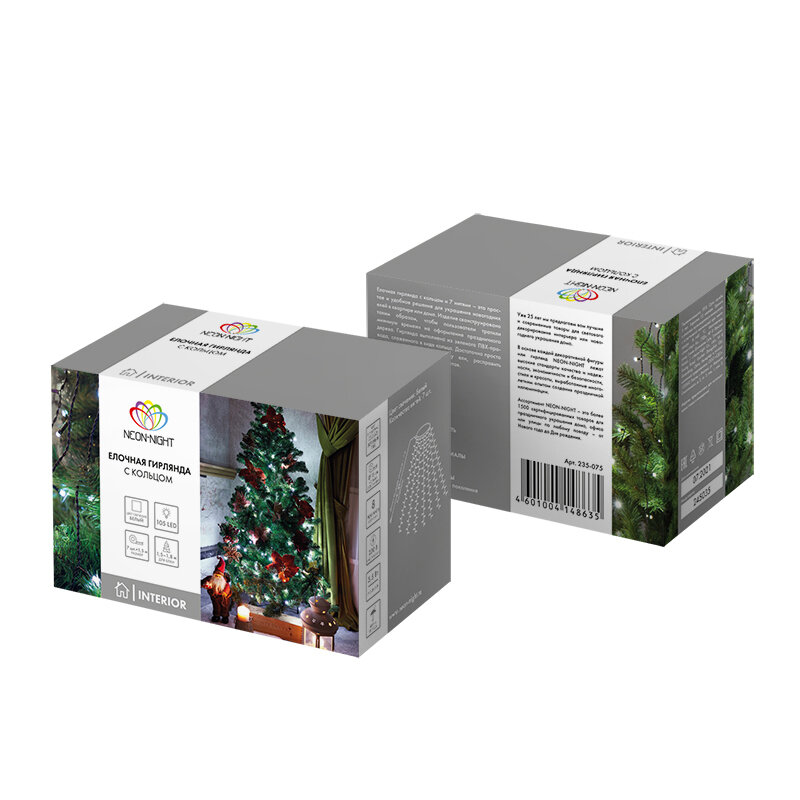 Гирлянда елочная с кольцом 7 нитей по 1.8м LED бел. не соединяется | код 235-085 | Neon-Night ( 1шт. )