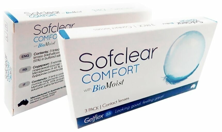 Контактные линзы на месяц ношения SofclearCOMFORT(with)BioMoist -3.0 / 6 линз