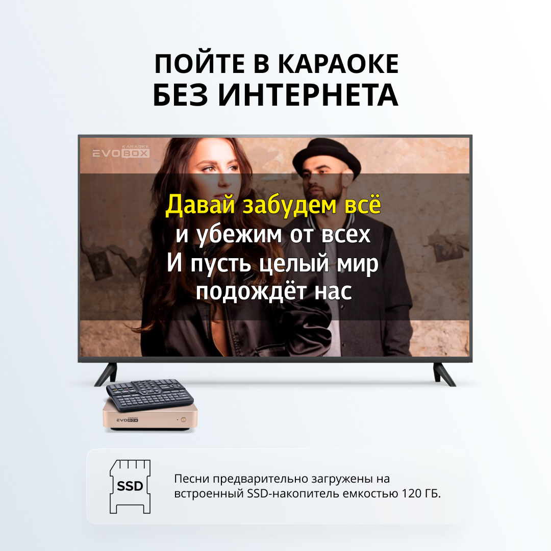 Evolution EVOBOX - компактная система караоке. 2000 популярных песен. Бесплатно 100 песен. 43000 песен в облачном хранилище