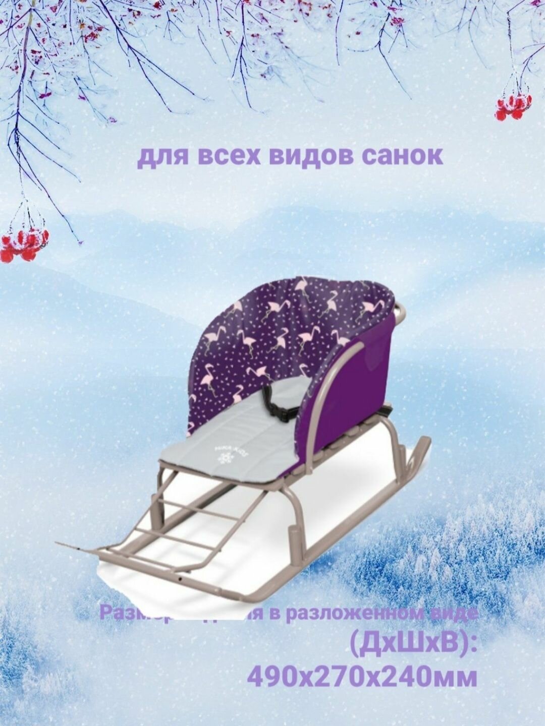 Сиденье для санок с чехлом для ног Nika СС3/3, фламинго на сливовом