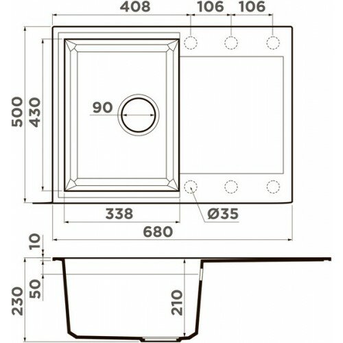 | Ширина мойки | 68 см |