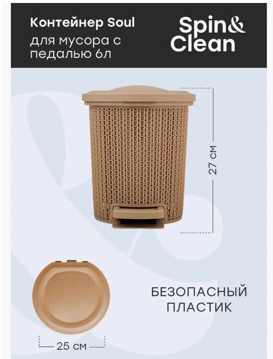 Контейнер для мусора Spin&Clean Soul с педалью 6 л, кофейный (SV4064КФ)