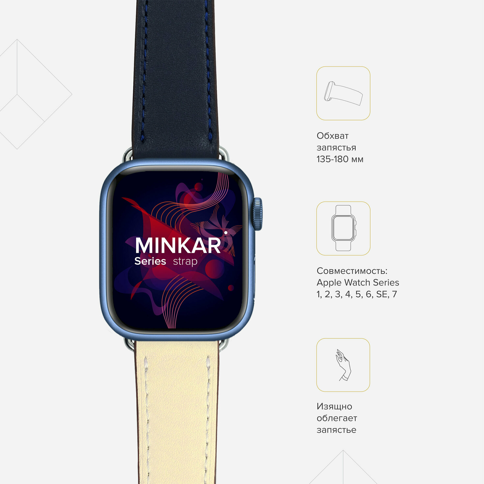Кожаный ремешок для Apple Watch 38/40/41 mm Series 1-7, SE LYAMBDA MINKAR LWA-03-40-ICO Синий интересное: