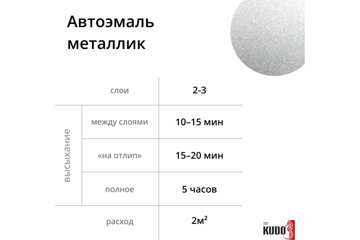 KUDO KU41495 Эмаь автомобиьная ремонтная метаизированная унный свет 495 520 м
