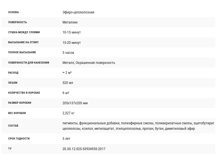 | Число компонентов автоэмали | однокомпонентная |