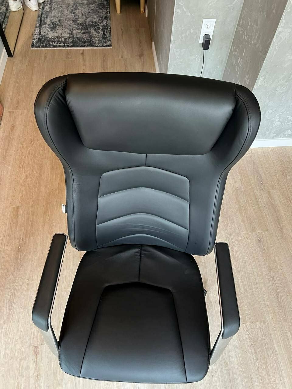 | Плюсы: | Отличный дизайн. Хромированные подлокотники не заляпываются отпечатками. Несмотря на то что не крепятся к спинке, нет люфта, скрипа. Уверенно держат руки, и не проблема если нужно облокотиться. В покрытию вопросов нет, оценил по достоинству. Главное что не потеет спина, возможно из-за формы и протяжки спинки, она не прилегает к одежде плотно. А может быть сама экокожа такая. В любом случае, креслом я очень доволен. |