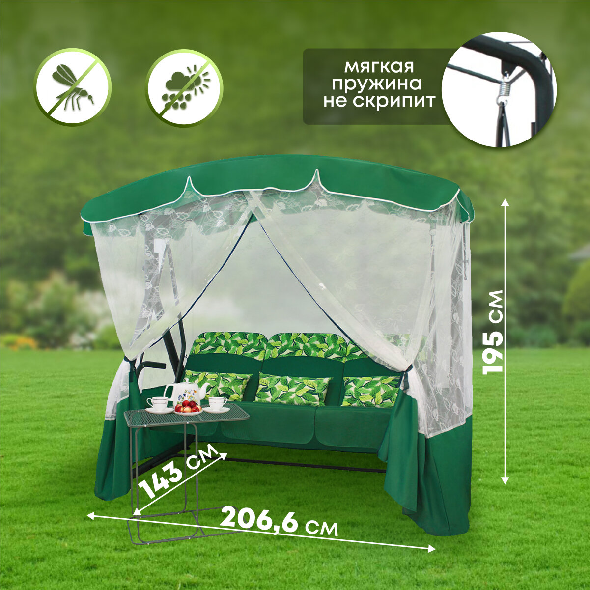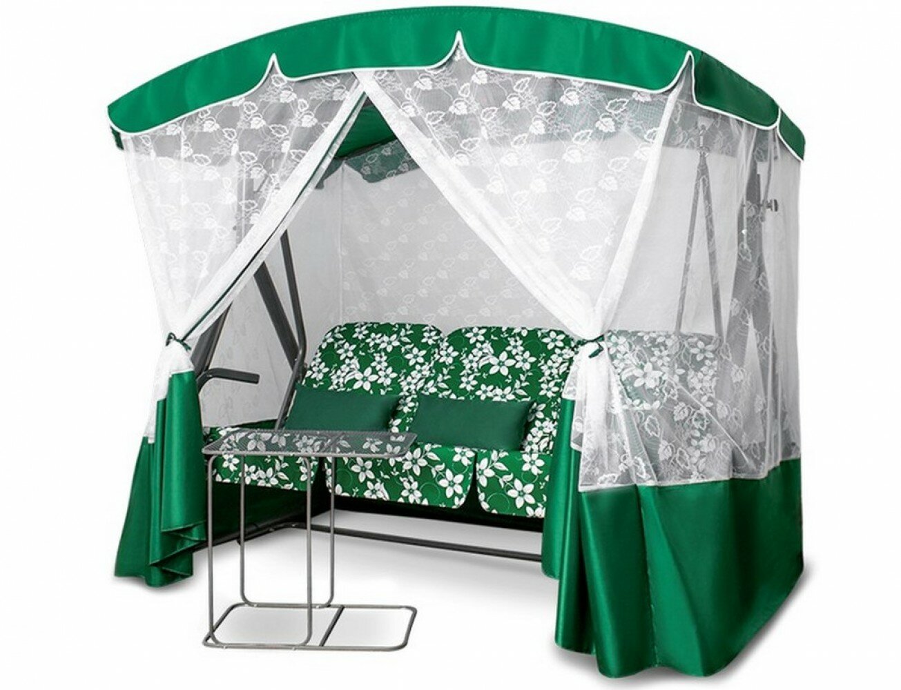 Качели Садовые Элегант Премиум Со Столиком (Зеленый)