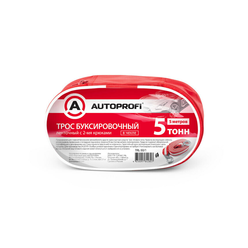 Trl-50/1_Трос Буксировочный! Ленточный, С Крюками, 5Т, 5М, Сумка AUTOPROFI арт. TRL-50/1