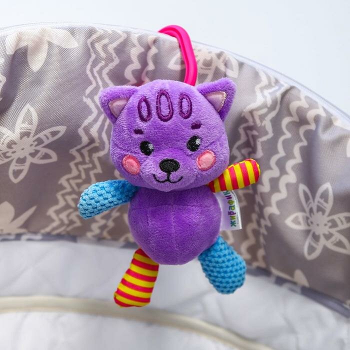 Подвеска текстильная в кроватку, в коляску,в автокресло с вибрацией Жирафики Котик