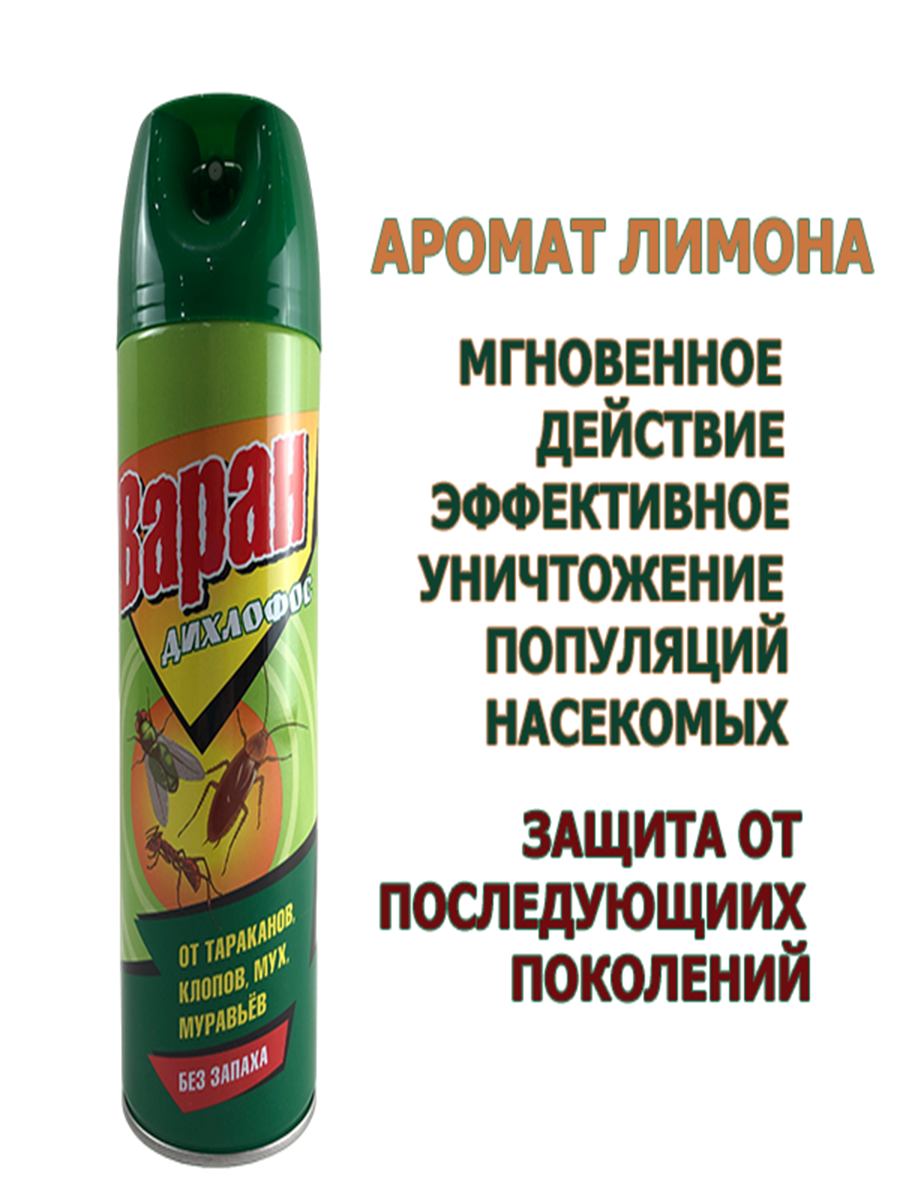 Дихлофос универсальный от всех насекомых, Варан, без запаха, 440 мл