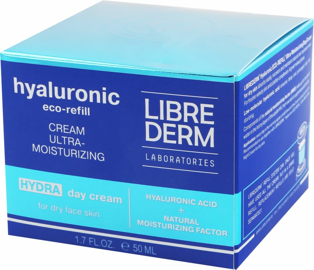 LIBREDERM Eco-refill Гиалуроновый крем ультраувлажняющий дневной для сухой кожи, 50 мл, Librederm