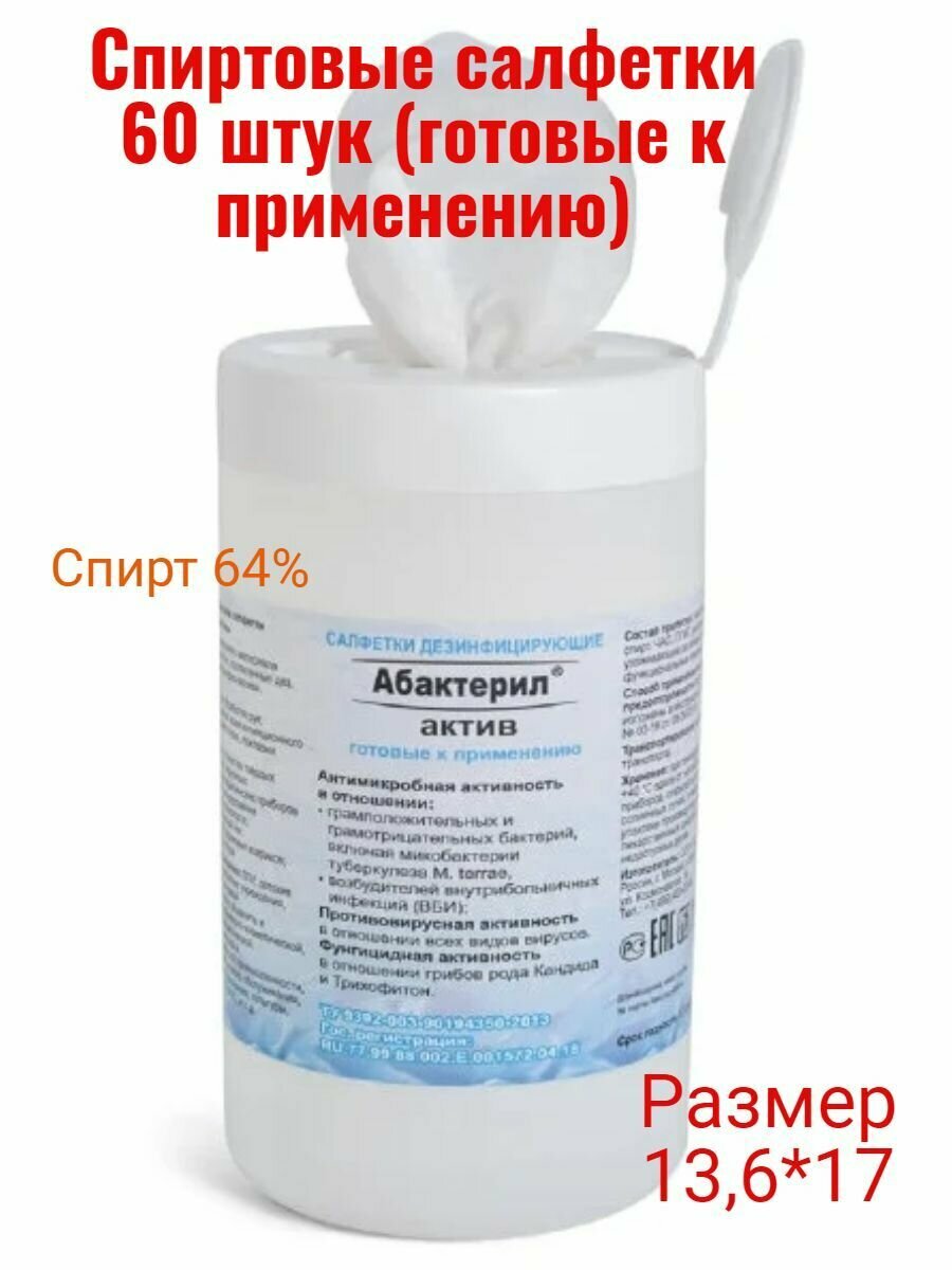 Салфетки дезинфицирующие Абактерил-актив №60 (13,6x17) влажные, в банке, 1201843