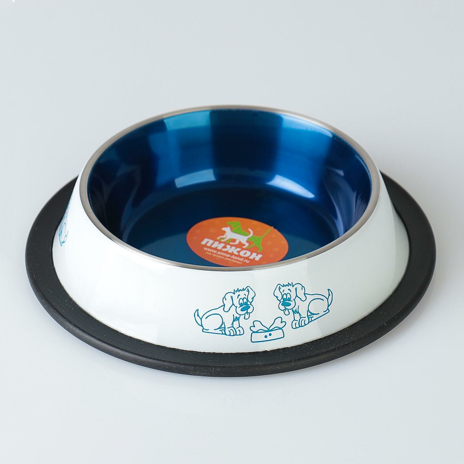 Миска для собак Пижон, с нескользящим основанием, бело-синяя, 230 мл
