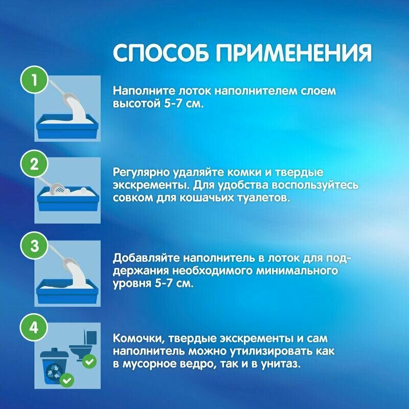 | Плюсы: | Держит запах, комкуется, можно смывать в унитаз. |
