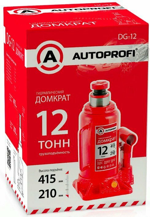 AUTOPROFI DG12 DG-12_домкрат! бутылочный гидравл., 12 тонн, защита от перегруза, высота 210-415мм\