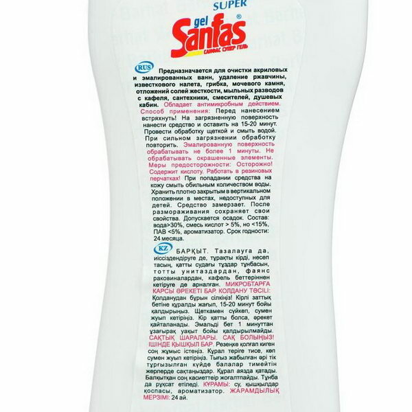 SUPER Средство для акриловых ванн SUPER SANFAS, гель, 500 г