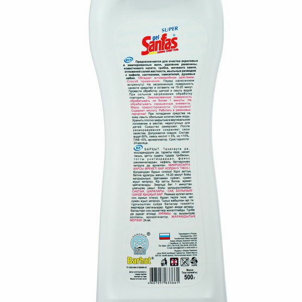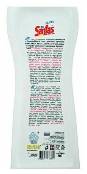 Средство для мытья акриловых ванн Barhat Super Sanfas, гель, 500 г