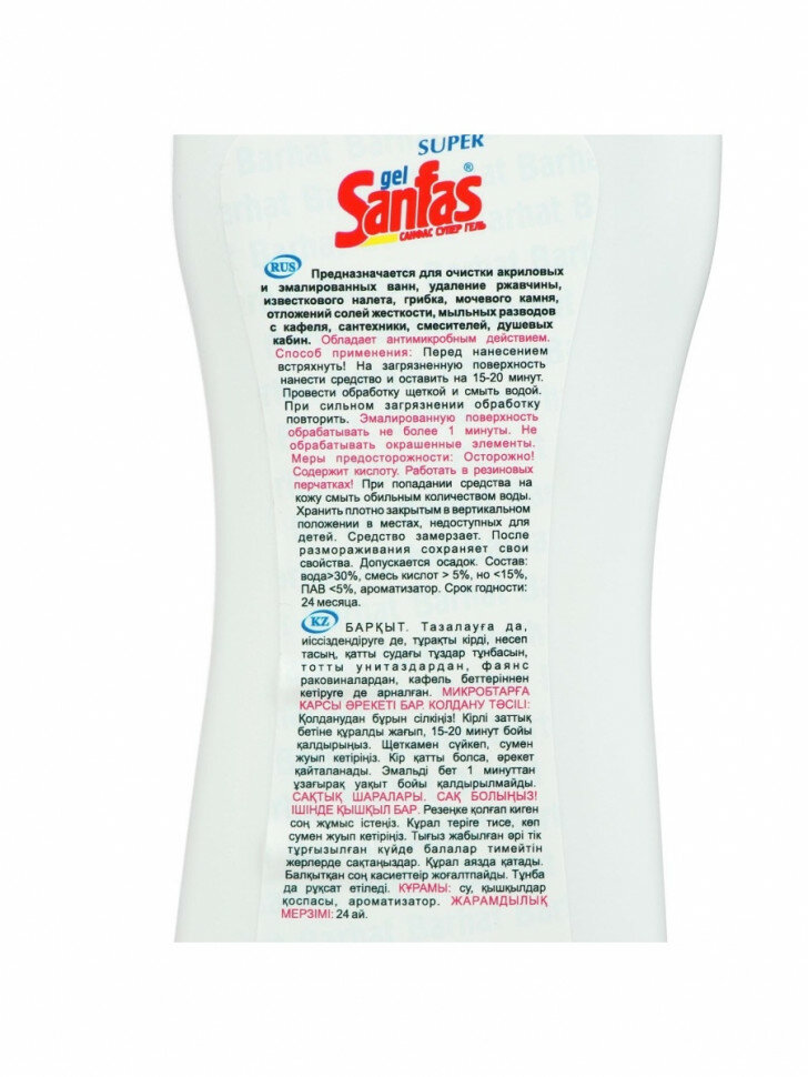 Средство для акриловых ванн SUPER SANFAS, гель, 500 г