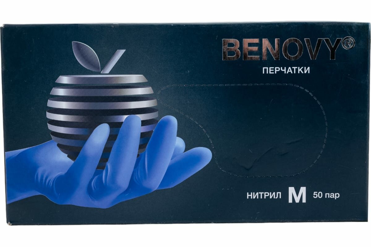 BENOVY Перчатки нитриловые 50 пар, черные, размер M, одноразовые, медицинские