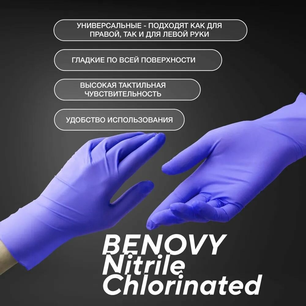 Перчатки нитриловые смотровые 100 пар (200 шт.), размер M (средний), BENOVY Nitrile Chlorinated