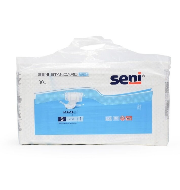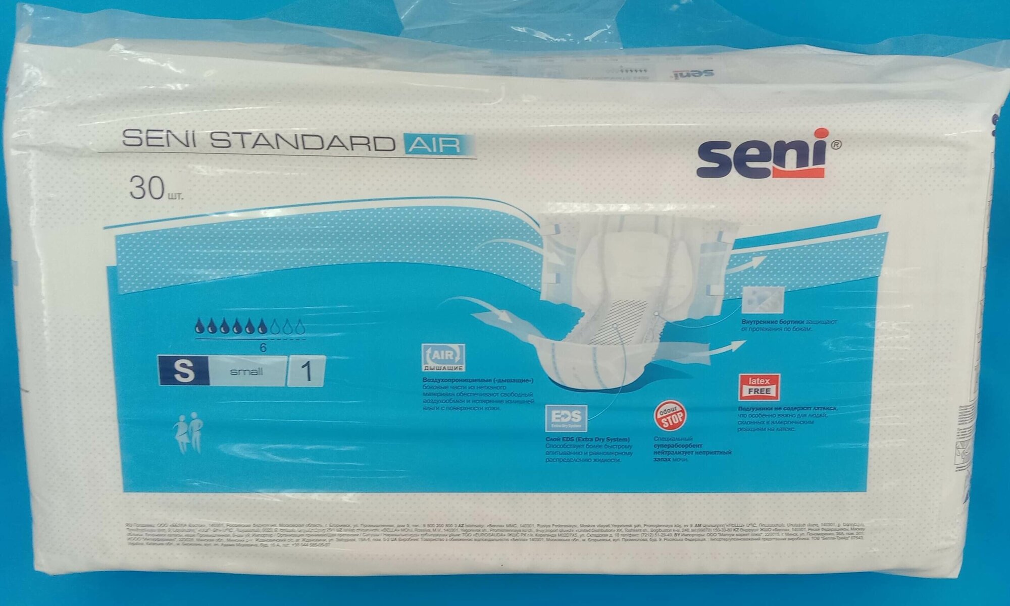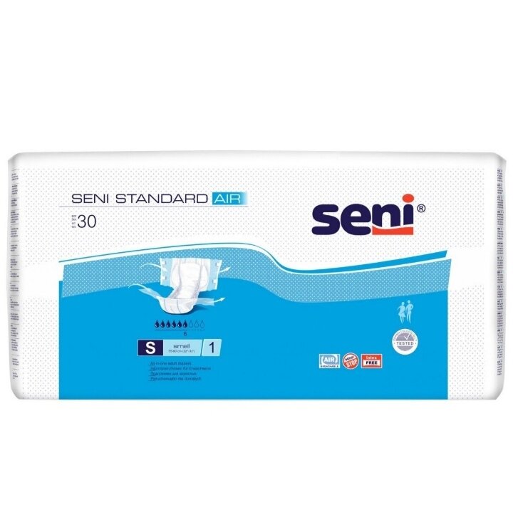 Подгузники для взрослых Seni Standart Air (Сени Стандарт Эир) - S (Small), объем талии 55-80 см, 6 капель, дневные и ночные, 30 штук