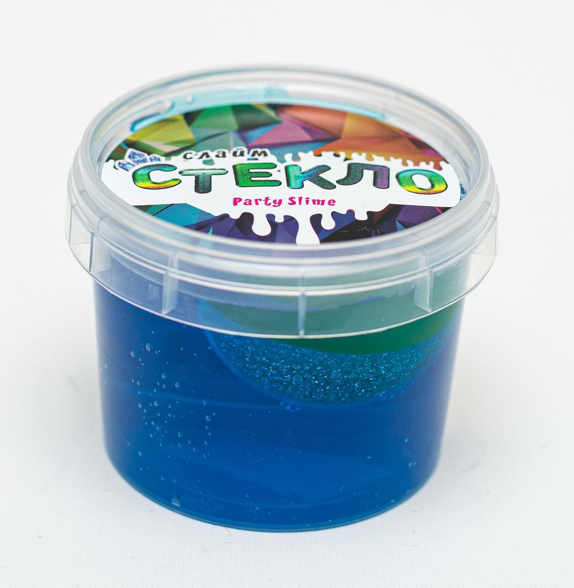 Слайм «Стекло» синий с капсулой серебро внутри, 90 г в банке, микс, "Лепа", цвет голубой, материал полимер