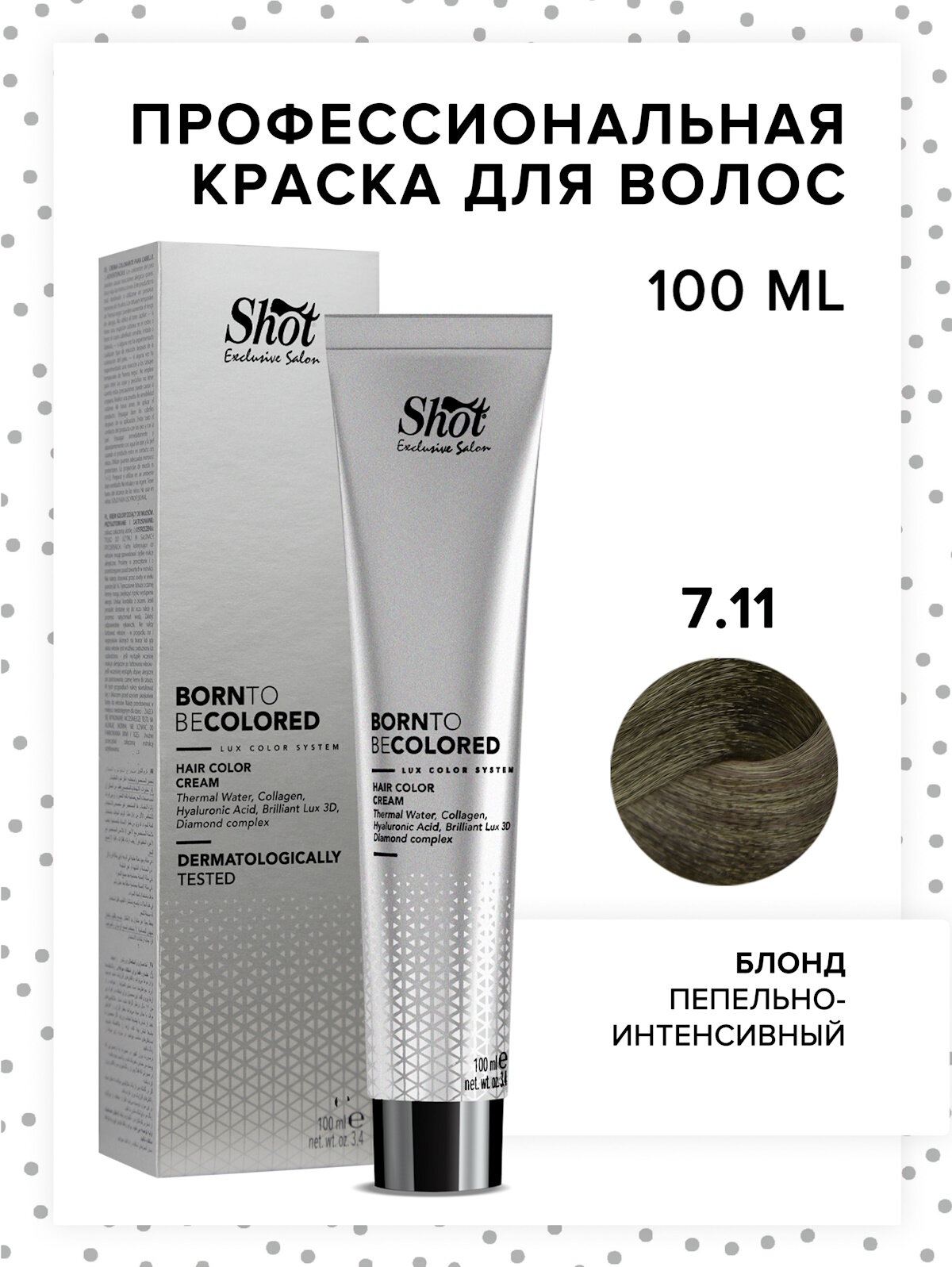 Купить Крем-краска BTB COLORED для окрашивания волос SHOT 7.11 блонд пепельно-интенсивный 100 мл